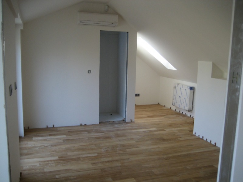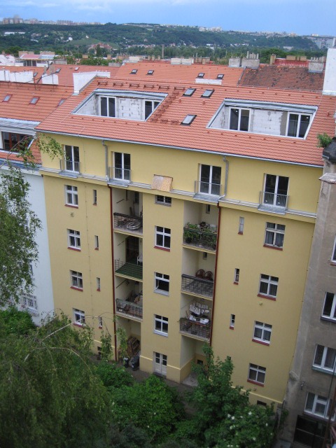Půdní nástavba dvou bytů 4 + kk + T, 140 m2, spojená s přístavbou osobního výtahu, rekonstrukcí společných prostora výměnou střešního pláště. Nová plynová stoupačka v prostoru schodišťových podest.
