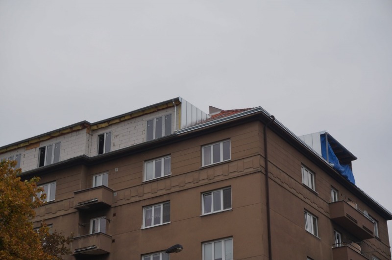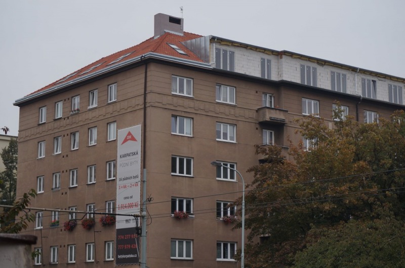 Půdní vestavba 16 bytů o dispozicích 1+kk až 3+kk. V rámci půdní vestavby došlo k rekonstrukci střešního pláště, výměně 4 ks osobních výtahů. Tento velmi úspěšný projekt jsme vyprodali v průběhu výstavby.